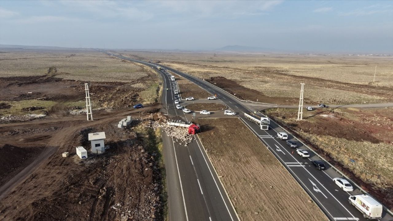Diyarbakır-Şanlıurfa kara yolunda ulaşım, devrilen tır nedeniyle kontrollü sağlanıyor. Nevşehir'den Batman'a giden Sefa Y. yönetimindeki patates yüklü 50 ADS 646 plakalı tır, Diyarbakır-Şanlıurfa kara yolunun Gelengöç Kavşağı'nda kontrolden çıkarak devrildi.