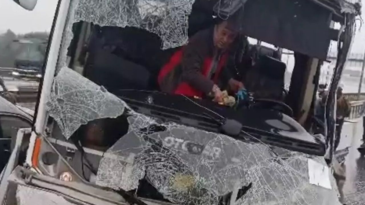 Başakşehir'de Kuzey Marmara Otoyolu Fenertepe mevkiinde polis ekiplerini taşıyan servis minibüsü ile bir otomobilin karıştığı zincirleme trafik kazası meydana geldi.