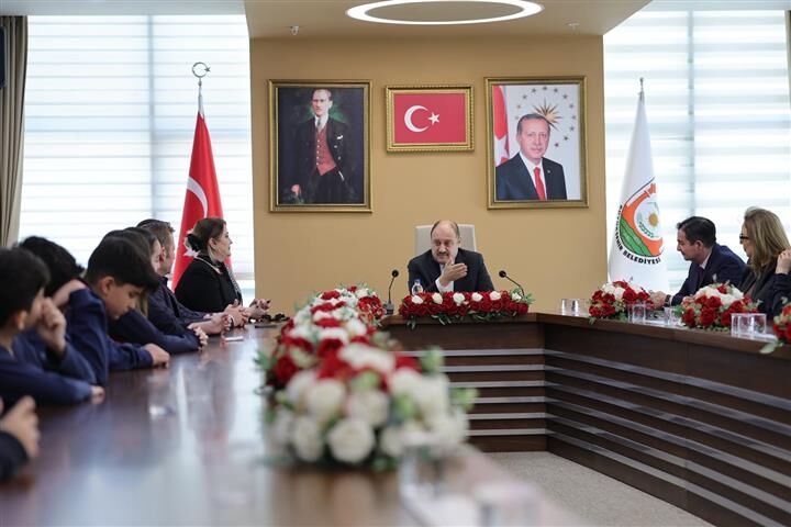 Öğretmenlerin de eşlik ettiği ziyarette, eğitim ve şehir yönetimi üzerine sohbetler gerçekleştirildi.