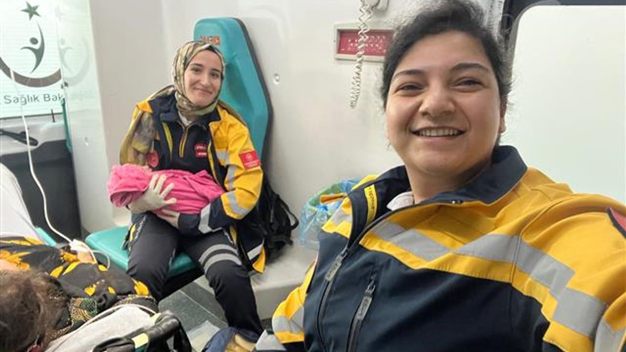 Acil Tıp Teknisyeni Büşra Nur Çulcu ve Paramedik Ebru İlgen’in özverili çalışmasıyla doğum ambulansta başarıyla gerçekleştirildi.