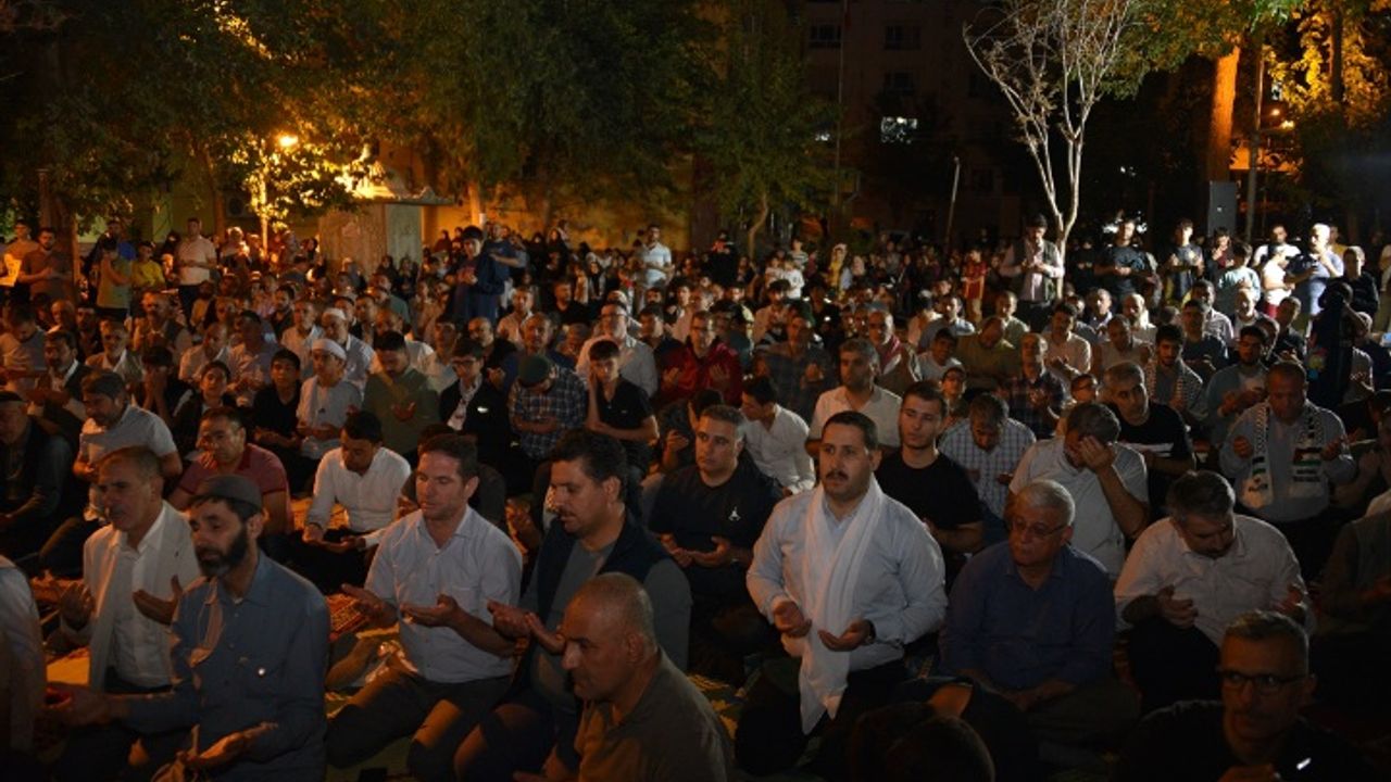 Gazze Dayanışma Platformu'nca Aksa Parkı'nda düzenlenen etkinlikte, seccadesiyle gelen vatandaşlar yatsı namazını kıldı.