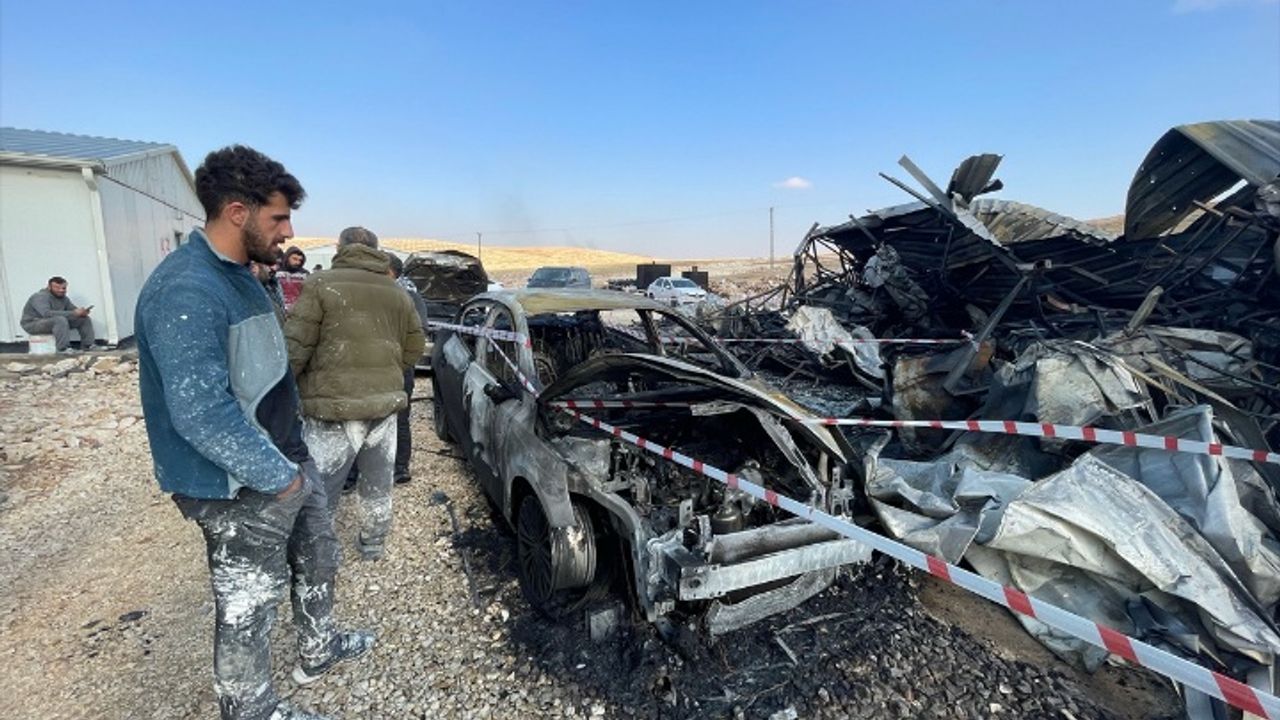 Şanlıurfa'nın Haliliye ilçesinde bir inşaatın şantiye alanında çıkan yangında 4 araçta hasar meydana geldi.