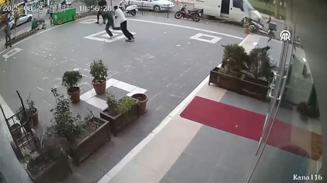 Görüntülerde, otelin önüne gelen minibüsten ateş açıldığı, aracın olay yerinden uzaklaştığı ve çevrede aralarında çocukların da bulunduğu kişilerin korkuyla kaçtığı görülüyor.