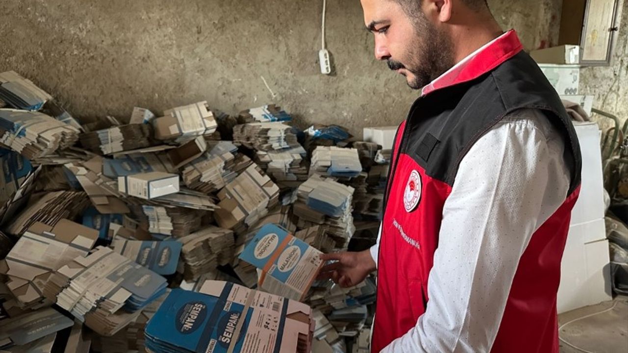 Ticari kaydı ve ruhsatı olmayan depodaki yüzlerce koli kimyasal gömülerek imha edildi.