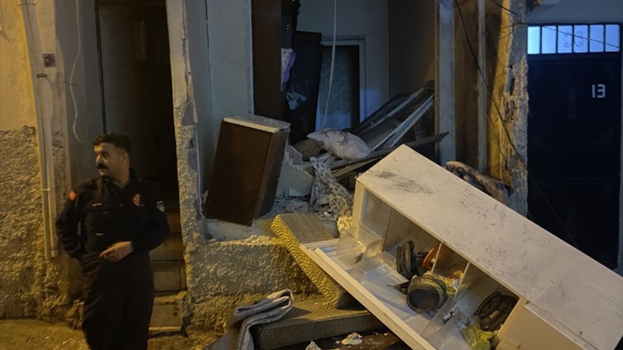 Patlama sonucu, sokağa bakan dış duvarının yıkılmasıyla eşyalar dışarı savruldu, evde büyük hasar oluştu.