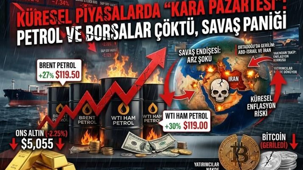 Ortadoğu'da tırmanan gerilim ve "uzun savaş" beklentisi, haftanın ilk işlem gününde küresel piyasalarda sert satış dalgasına yol açtı. ABD, İsrail ve İran hattındaki risklerin artmasıyla enerji fiyatları fırlarken, borsalarda çöküş yaşandı.