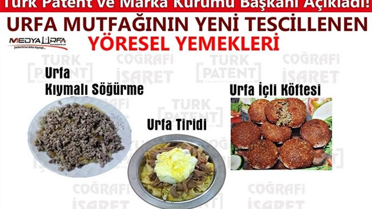 Bir süre önce de Şanlıurfa mutfağının; Ciğer Kebabı, Tırnaklı Ekmek, Haşhaş Kebabı, Açık Ekmek, Pencer (Pazı) Boranısı, Yumurtalı Köfte, İsot Çömleği, Frenk Çömleği, Üzlemeli Pilav, Lebeni, Su Kabağı Yemeği, Zerde ve Külünçesi tescillenmişti.