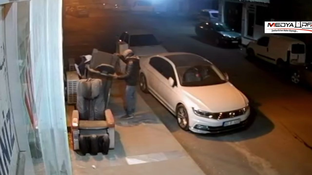 Hırsızlık anı iş yerinin güvenlik kamerası tarafından kaydedildi.